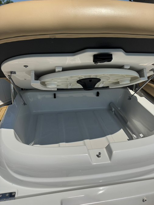 Port side cockpit wetbar with Igloo cooler storage. Removable cockpit table.